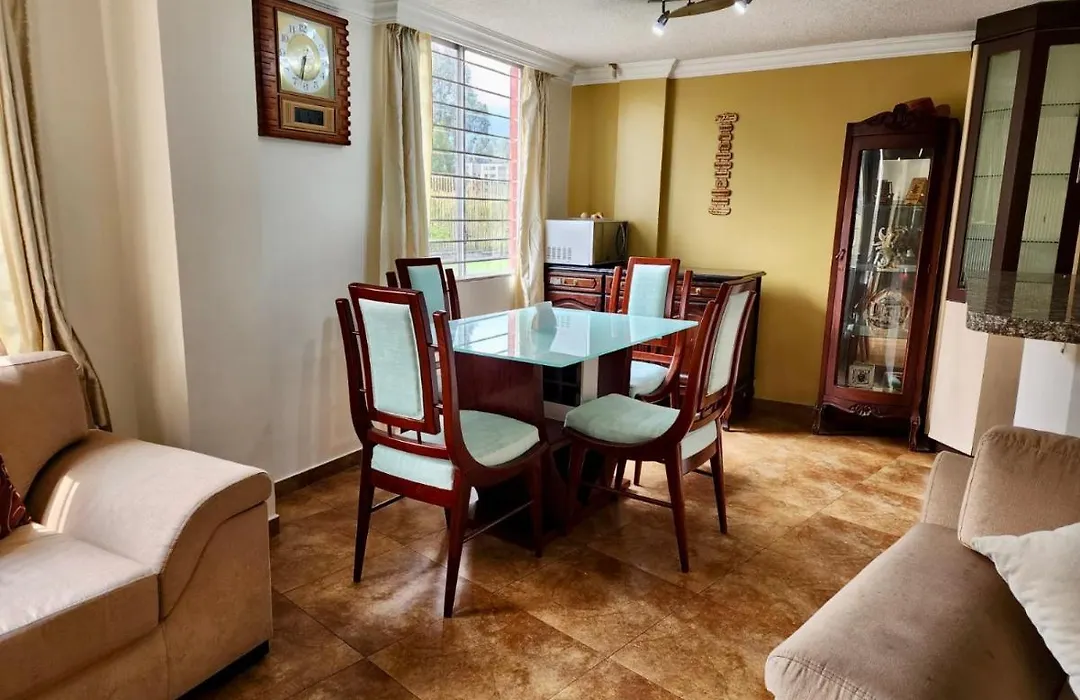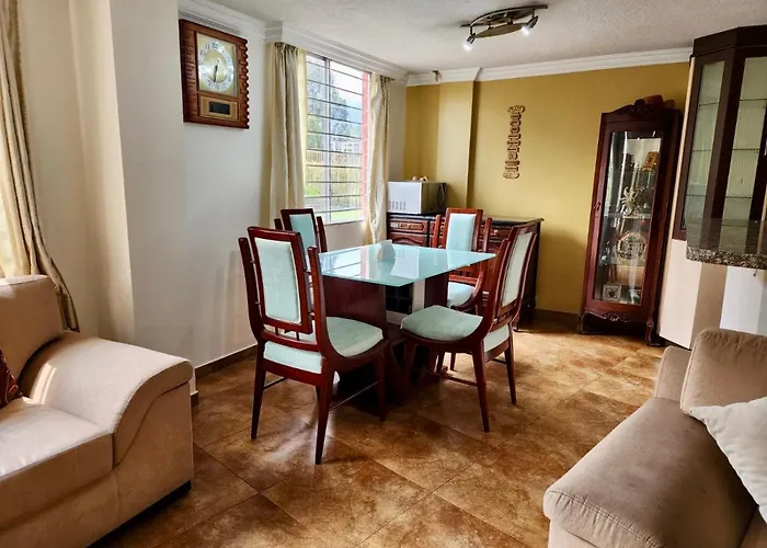 Disfruta de tus vacaciones en Quito en el Quitumbe - Moderno Y Comodo Departamento. Ideal para quienes buscan una experiencia auténtica, está situado a tan solo 1 km del Parque Las Cuadras y a 15 minutos en coche del Parque Metropolitano del Sur. Este apartamento de 100 m² tiene un patio que ofrece vistas al jardín.